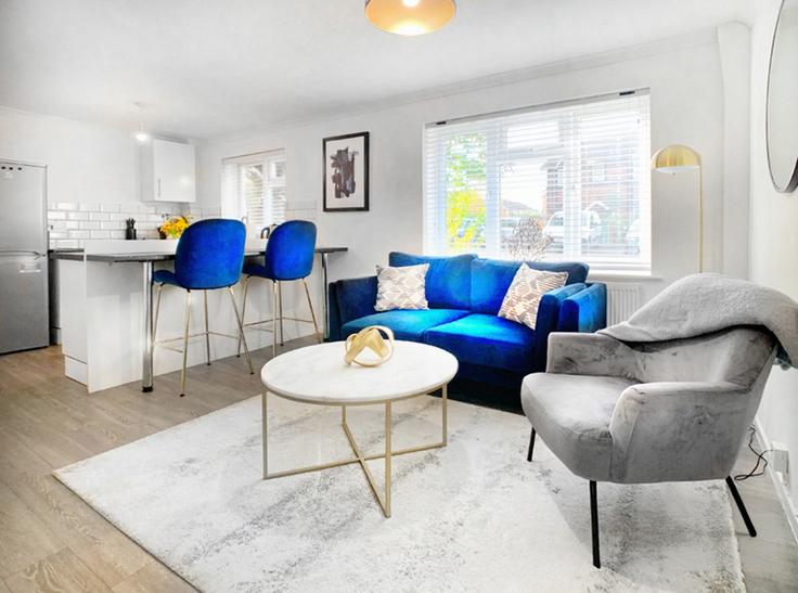 Elegante sala de estar con mobiliario moderno en un apartamento en Building The Orchard - smarter-rent-ltd - 1351513 en Surrey Heath District, Lightwater